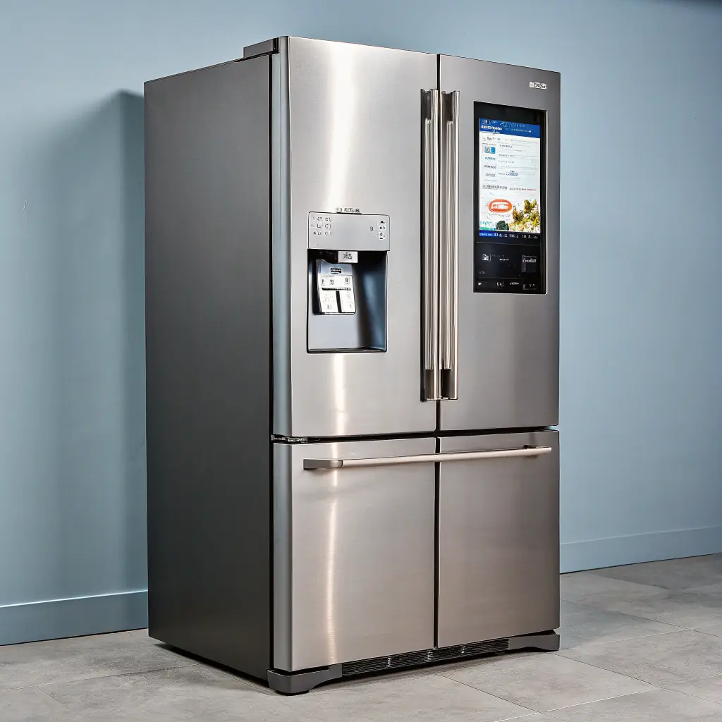 Este frigorífico inteligente de última generación presenta un diseño elegante con una gran interfaz de pantalla táctil en la puerta. Ofrece tecnología de refrigeración avanzada, eficiencia energética y conectividad inteligente para monitorear y controlar la configuración de forma remota. El interior es espacioso con estantes ajustables e iluminación LED para una visibilidad óptima. Perfecto para cocinas modernas que buscan comodidad y estilo.