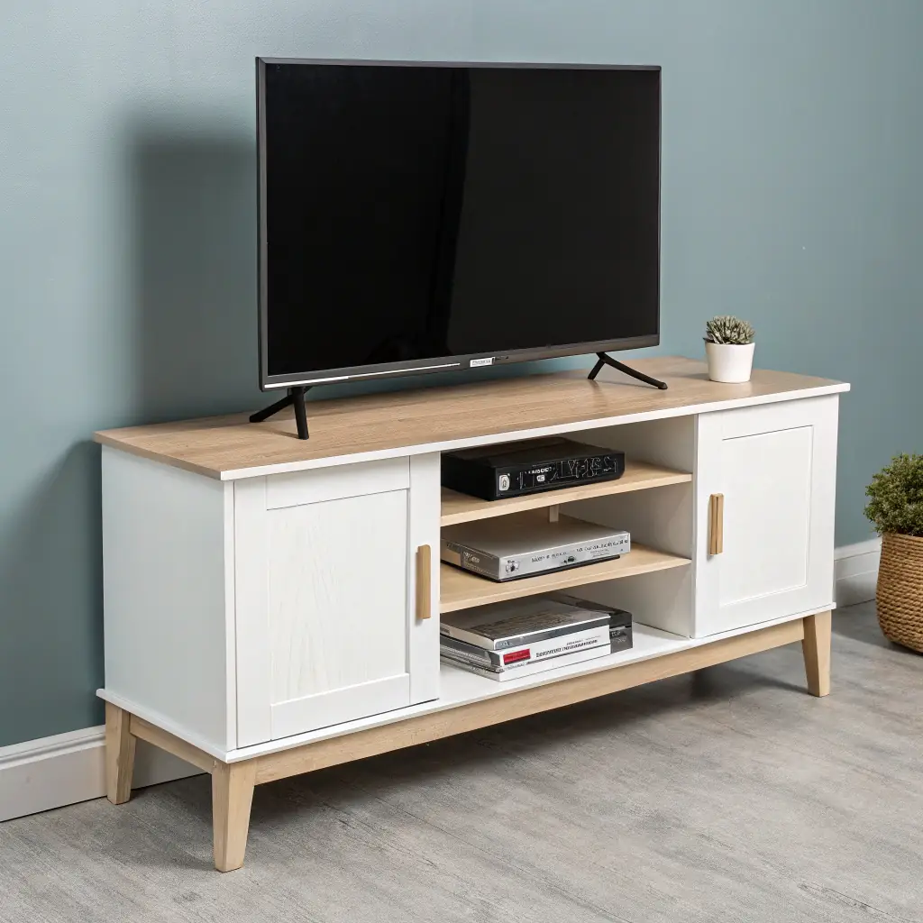 Este elegante mueble de TV ofrece un amplio espacio de almacenamiento con múltiples compartimentos y estantes. Fabricado con materiales de alta calidad con un acabado contemporáneo, está diseñado para sostener televisores de pantalla plana grandes y dispositivos multimedia. Su estilo minimalista complementa los salones modernos, proporcionando funcionalidad y atractivo estético. Fácil de montar y duradero.